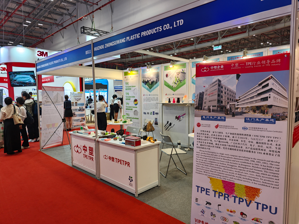 2025年9月17日至20日,越南胡志明市國家會議中心迎來全球橡塑行業(yè)矚目的盛會——Vietnam Plas 2025越南胡志明橡塑展。作為東南亞地區(qū)規(guī)模最大、影響力最廣的橡塑行業(yè)展會,本屆展會聚焦“綠色、智能、可持續(xù)”主題,吸引了來自全球50余個國家的800余家企業(yè)參展,覆蓋原材料、設備、技術解決方案等全產業(yè)鏈。中塑王TPE(展位號:B511)攜旗下全系列熱塑性彈性體材料及創(chuàng)新應用解決方案亮相,成為展會焦點之一。